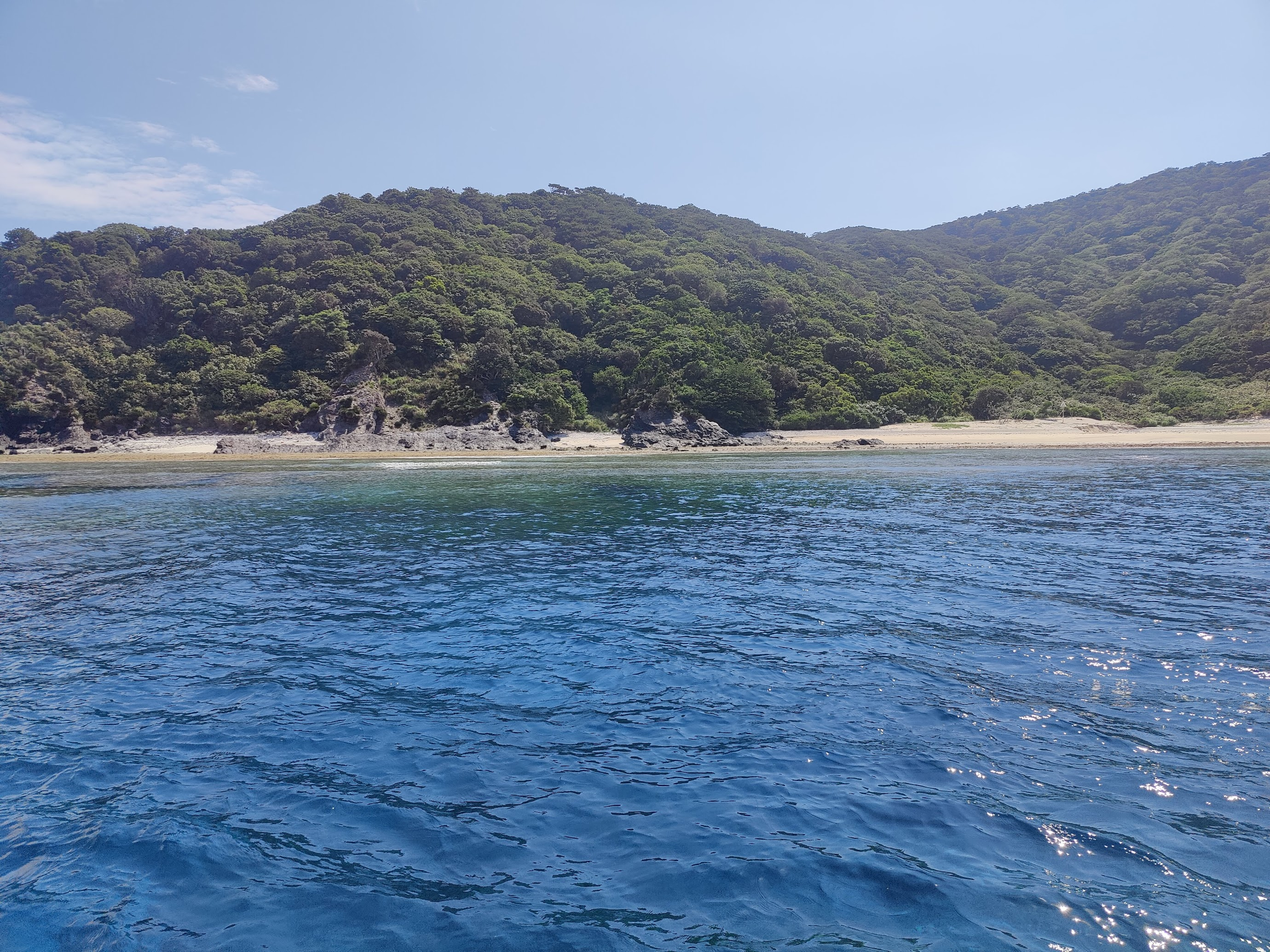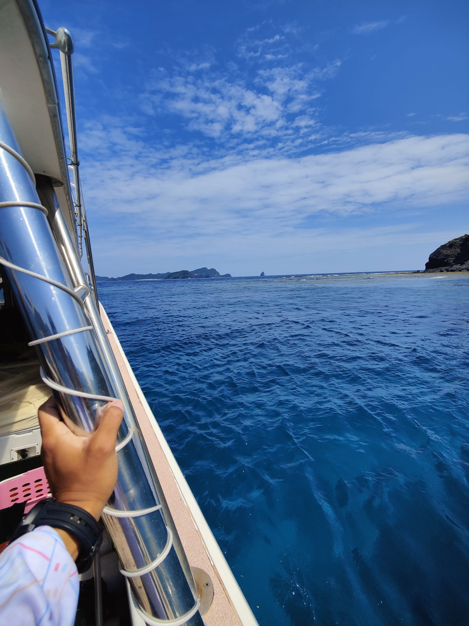 I almost missed my pickup time on the 2nd day as I overslept, having worked until 2am the night before. I woke up at 6:43am, and Pedro was going to leave if he didn’t see me at 6:45am (pickup was 6:35am). Luckily, I had packed my things the night before and dressed up before I slept, so I managed to make it out of my hostel in 2 minutes. The day turned out to be the best dive experience I’ve had so far. Swimming with huge turtles, chilling with octopuses, seeing seahorses (they are so smol), schools of some big fish (I don’t know their names), and also meeting a lovely couple from Sydney, Carmen and Stephen. The weather was great that day, and not only did I enjoy the time underwater, but also the surface intervals on the boat with the chilly summer breeze and the infamous blue sea water of Keramas. 传说中的庆良间蓝,它真的很蓝。Also, the last dive of the day was a drift dive, and the entrance was interesting. Everyone lined up on the boat, and once the captain found the entrance spot, we leap-dove immediately into the water and met underwater. Hush hush, no delay because the surface current was strong.