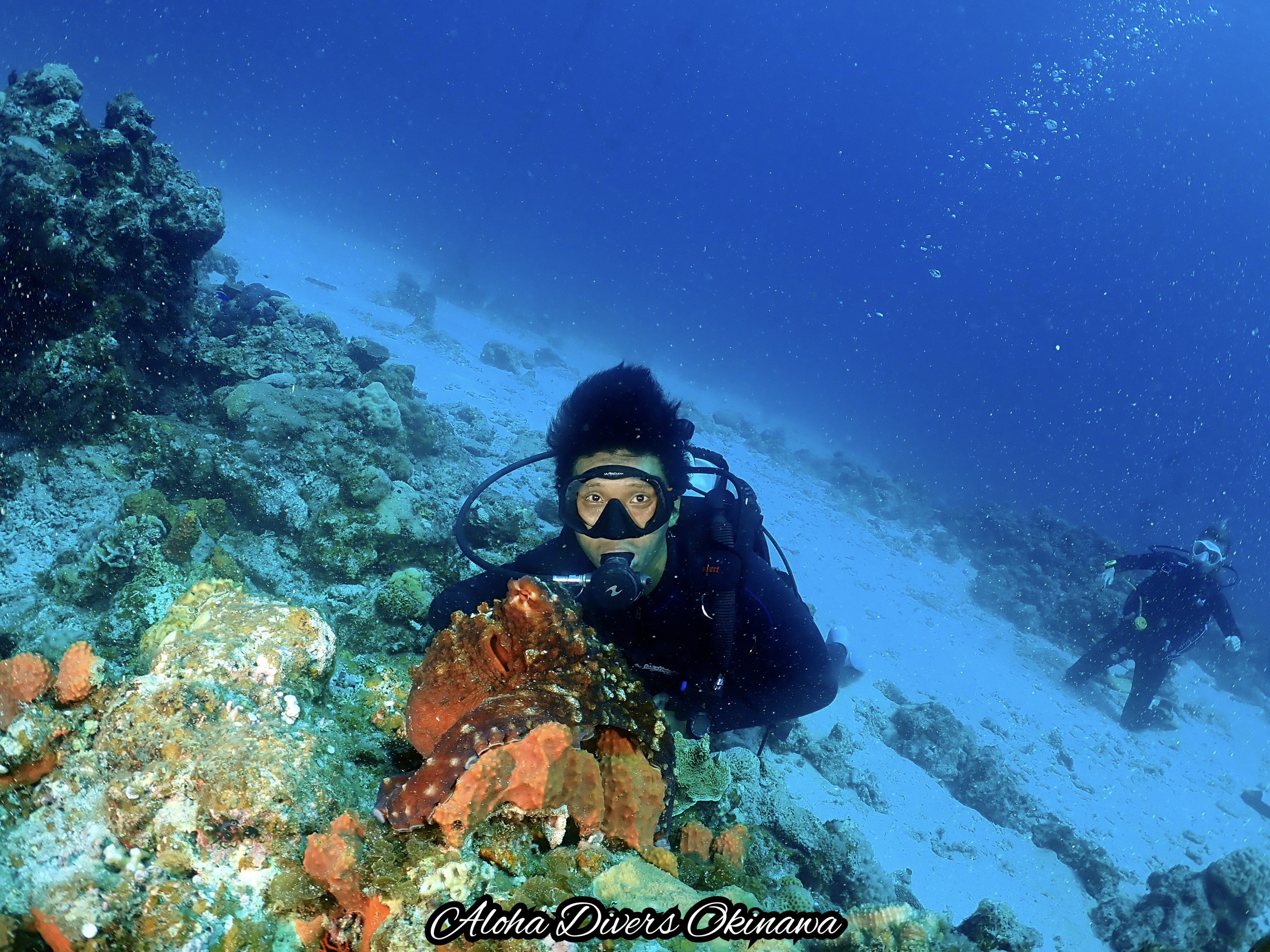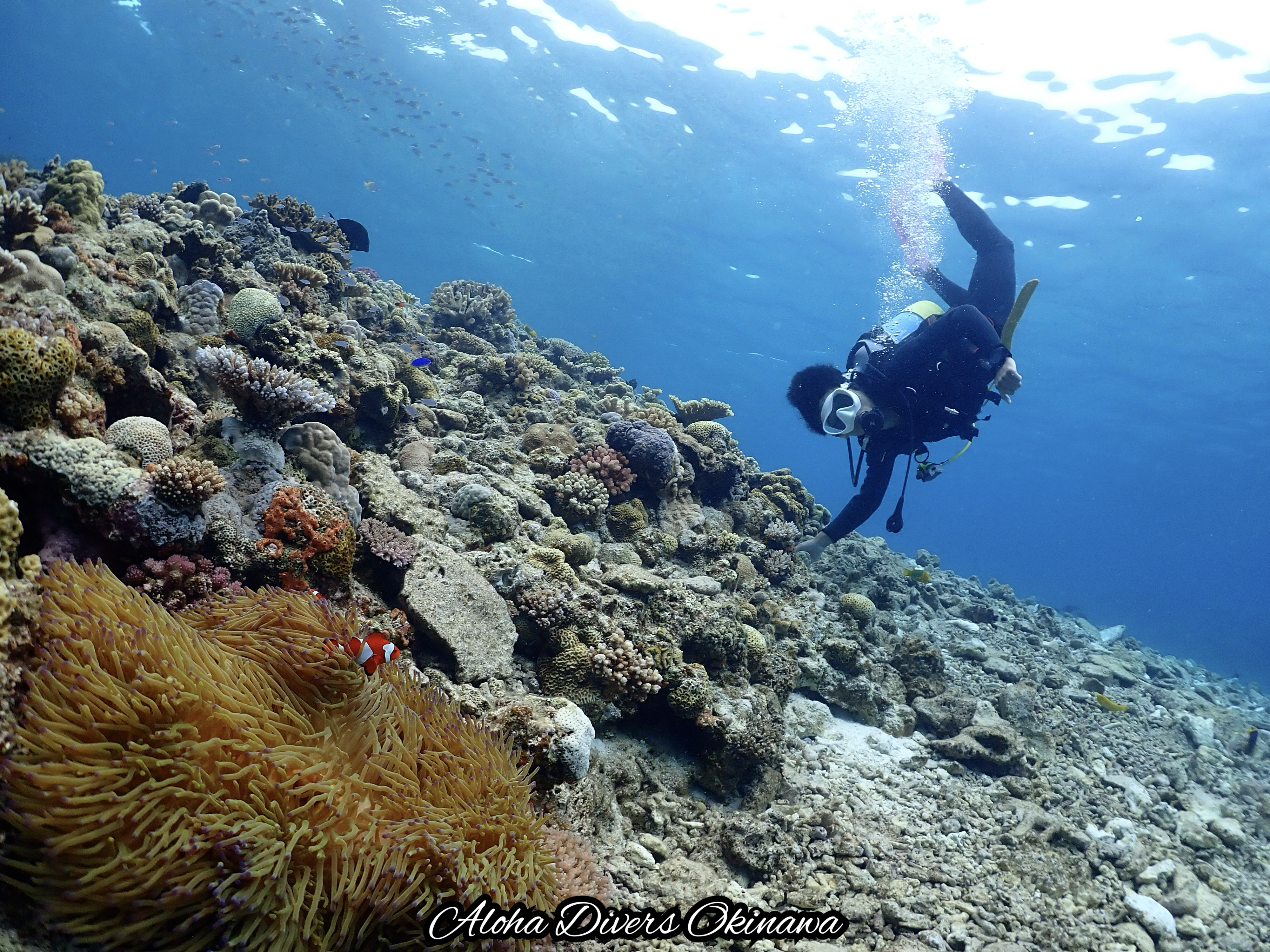 The dive shop I chose was Aloha Dive. It was run by a Brazilian couple, Pedro and Andrea, who turned out to be very nice dive instructors. The best part? They offer free underwater photography. The price was very reasonable too! 61000 YEN for 8 dives across 3 days, including gear rental and free pickup from the hotel.